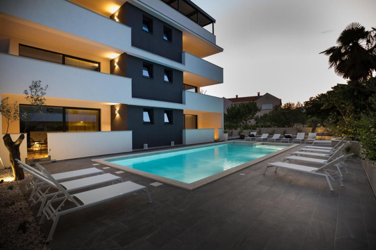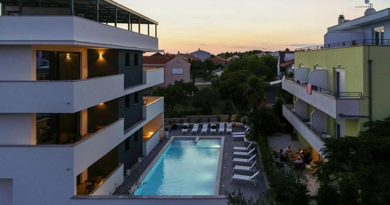 Large apartment building with pool