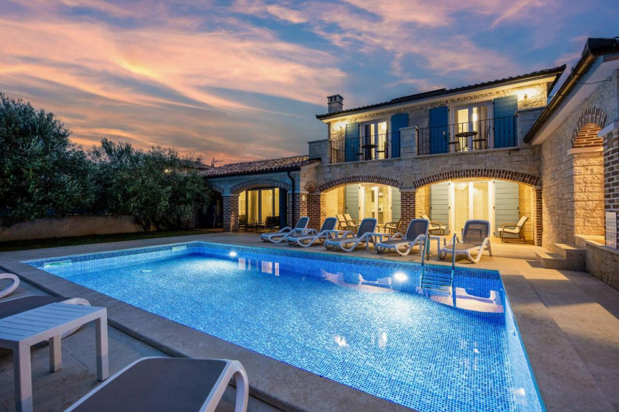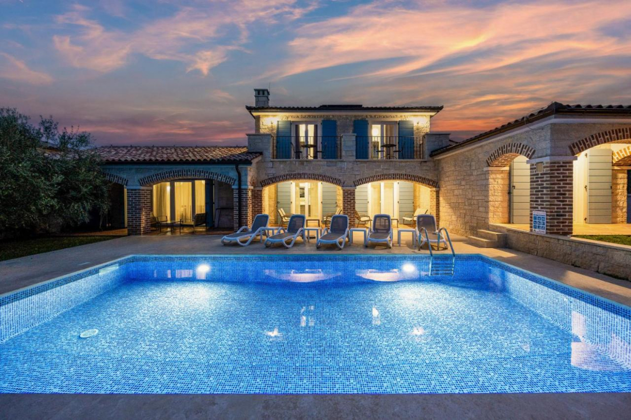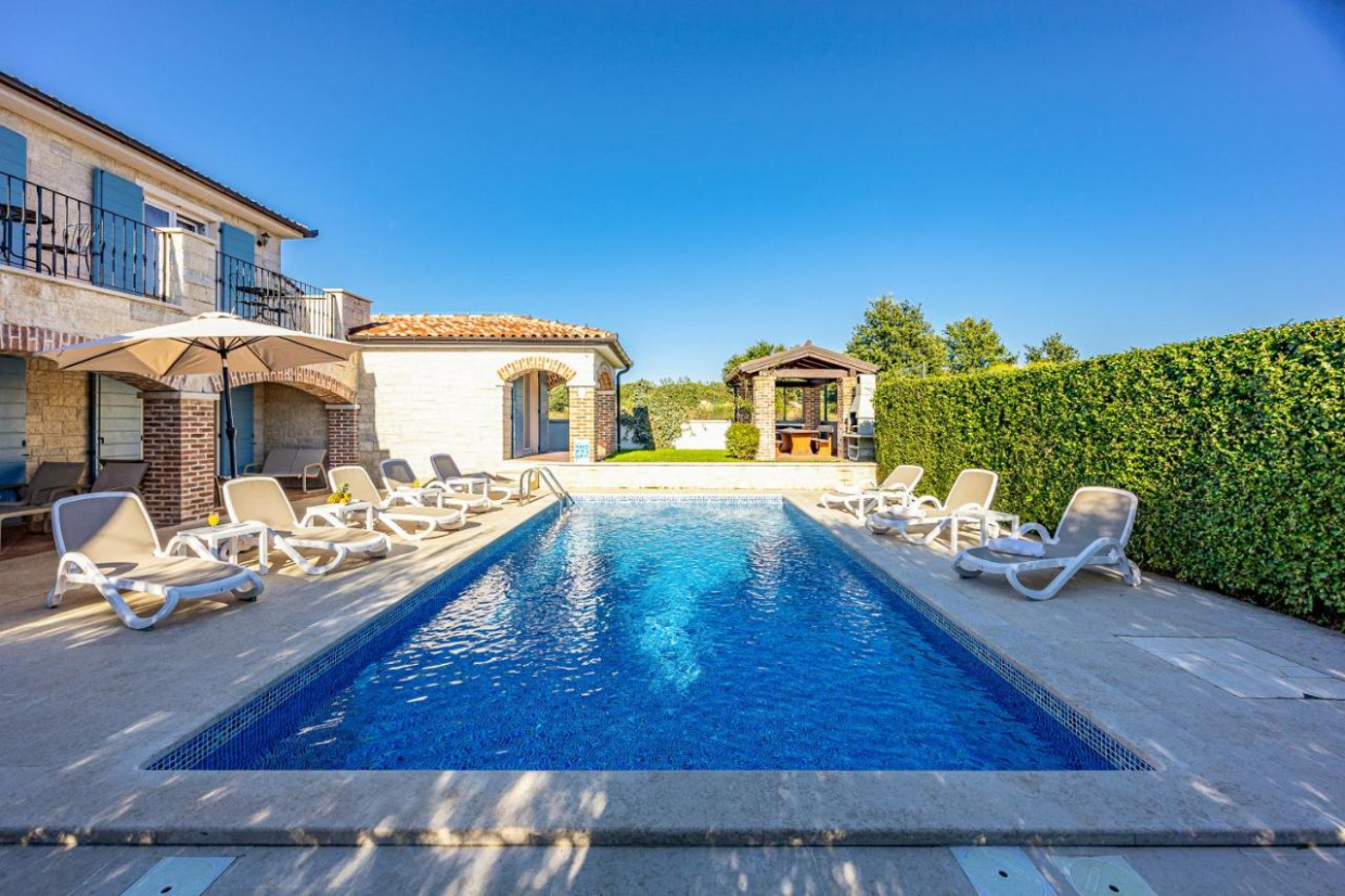 In Lozovac there is a detached house with modern architecture and functional room layout with swimming pool and a total...
