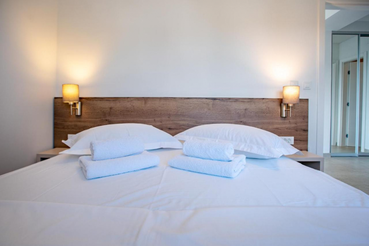 The two semi-detached houses are located in Tisno, 480 m from the pebble beach. One semi-detached house extends over...