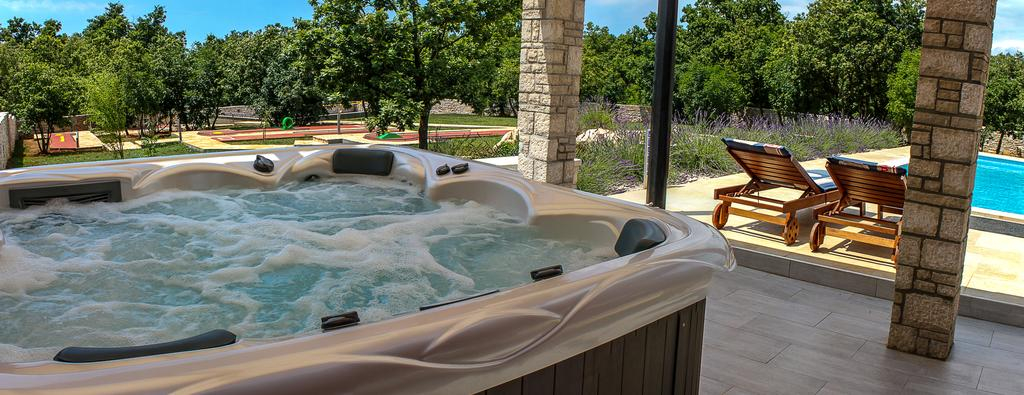 For all those who are looking for additional outdoor activities, the house has a mini golf area, basketball court, playground, jacuzzi, large garden and a comfortable outdoor pool!