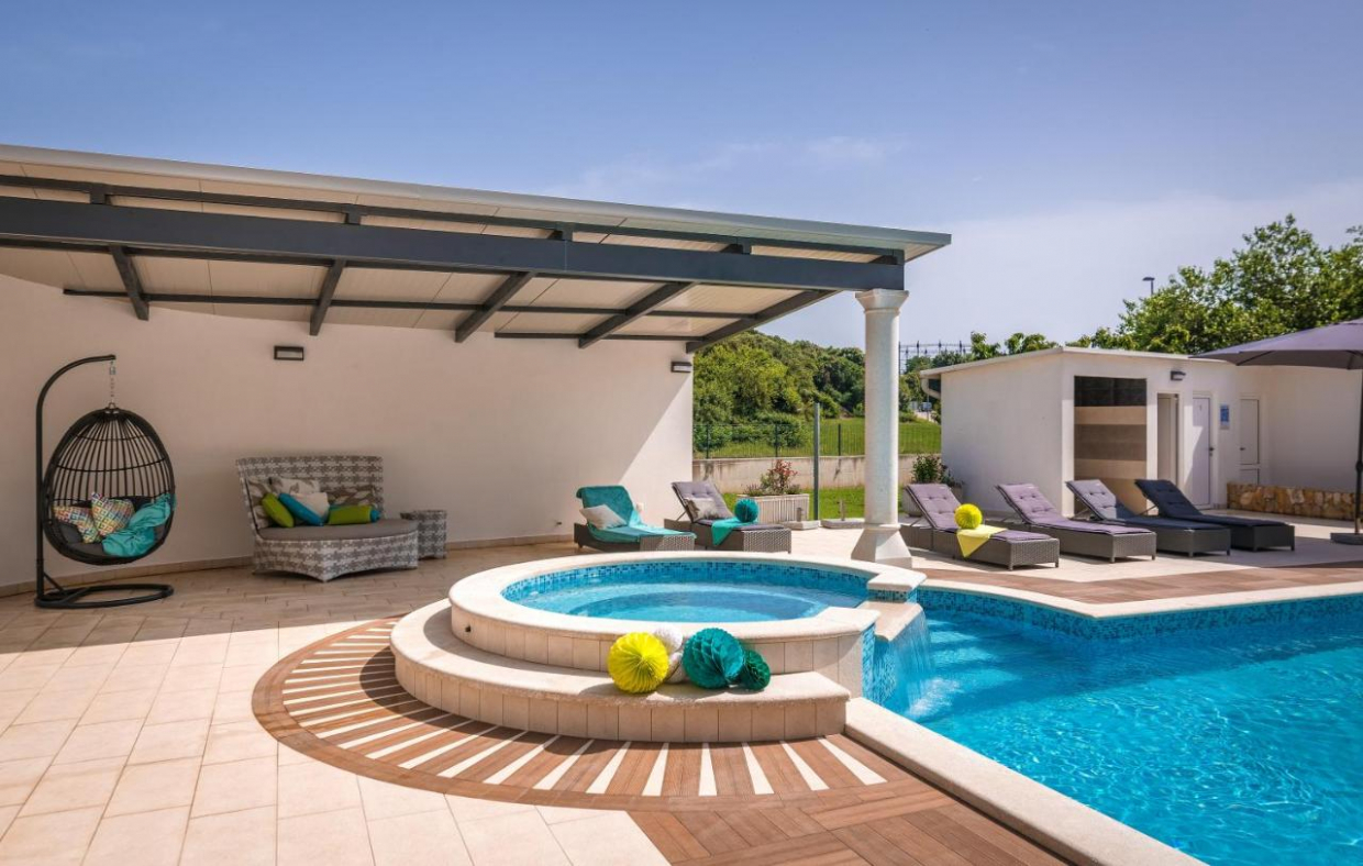 In Lozovac there is a detached house with modern architecture and functional room layout with swimming pool and a total...