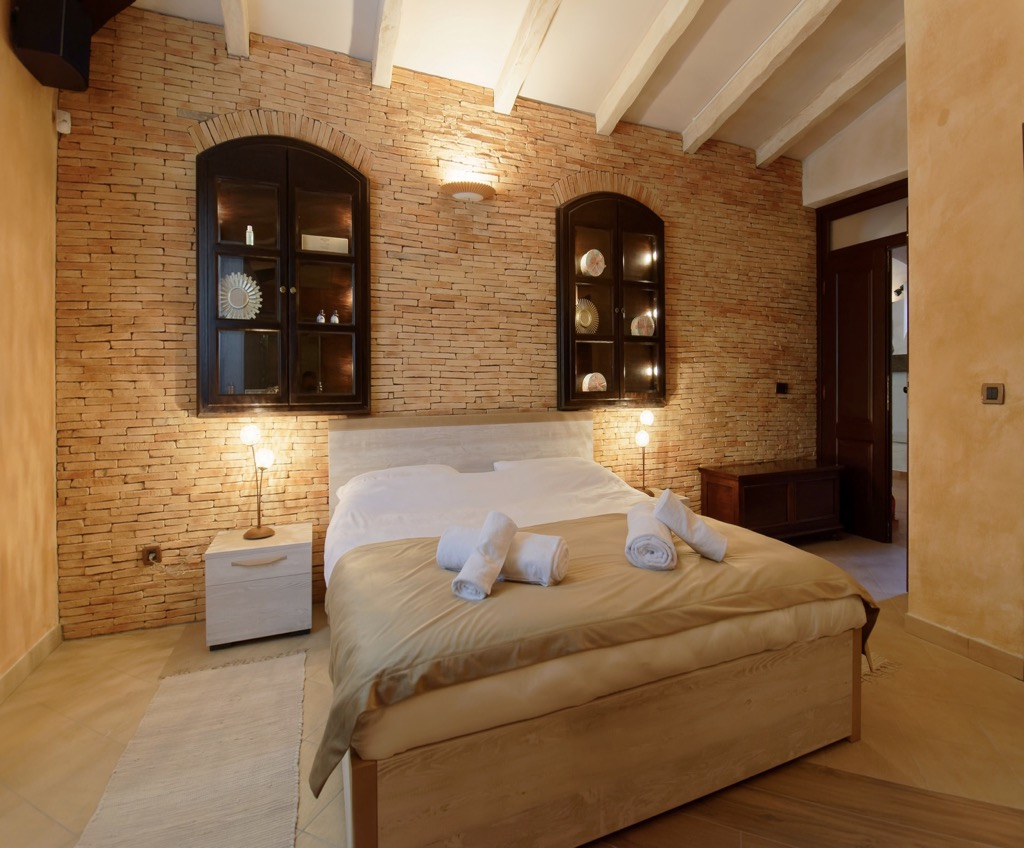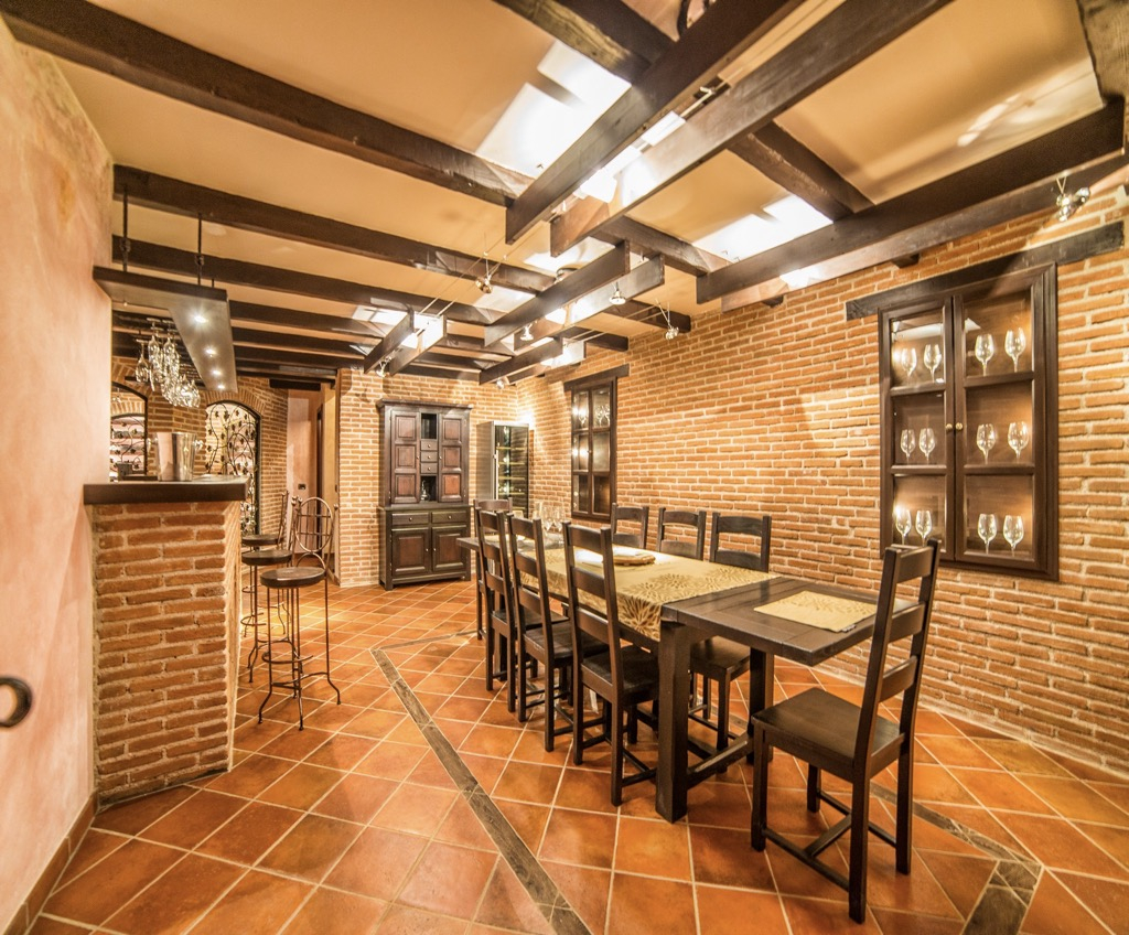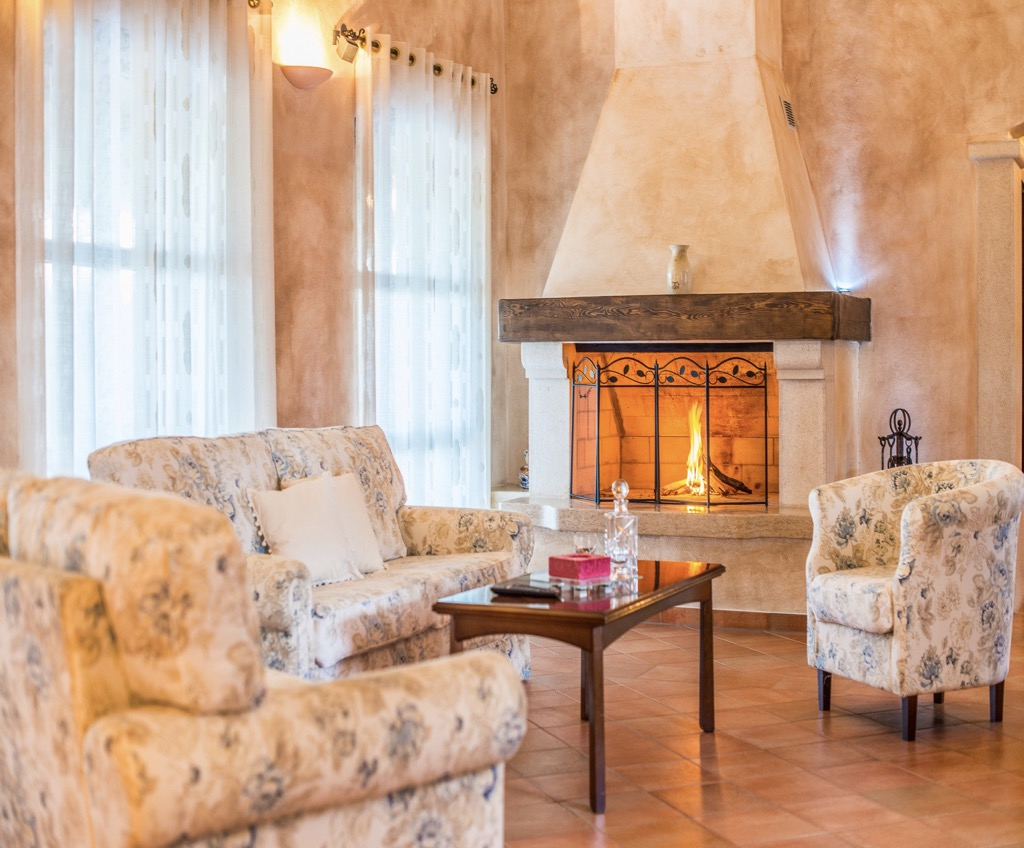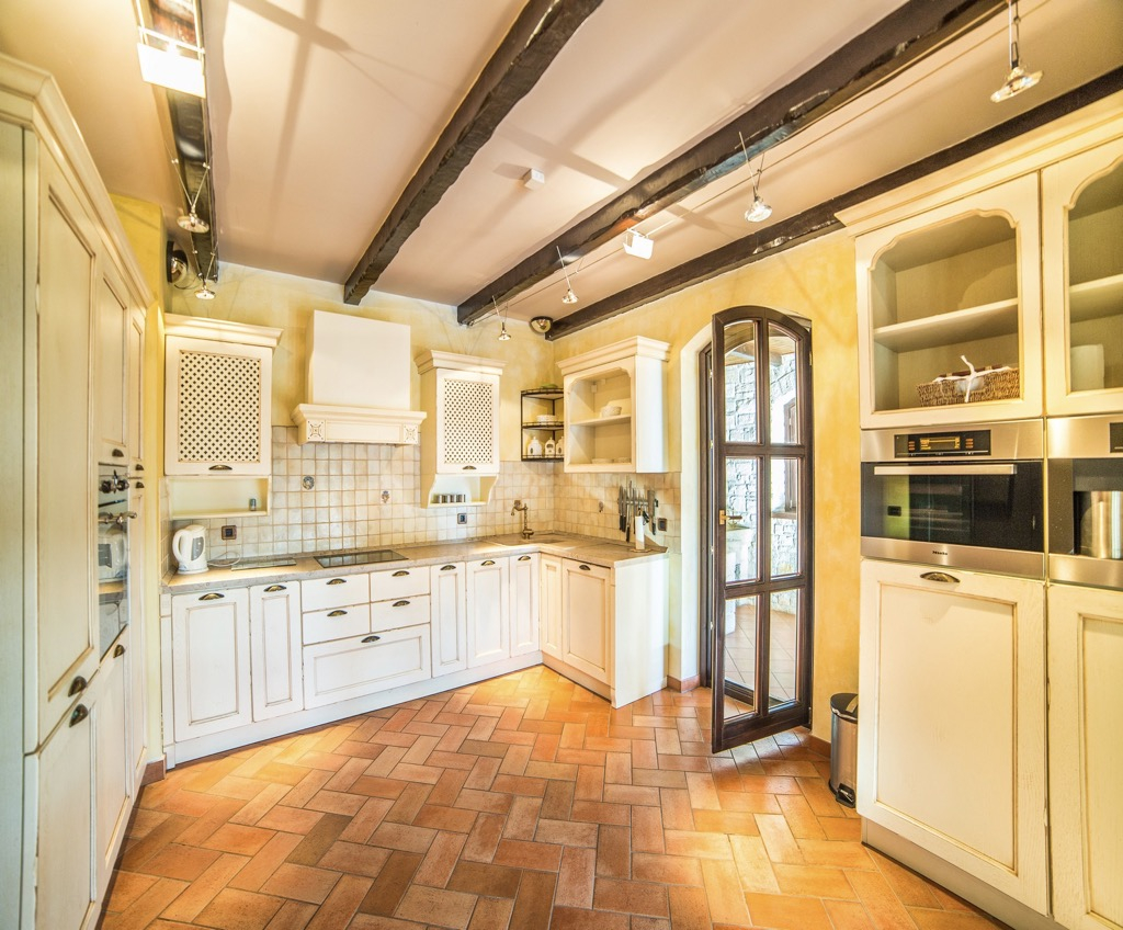 High ceilings, stone walls, floors and a huge fireplace give you the feeling of living in a fairytale castle.