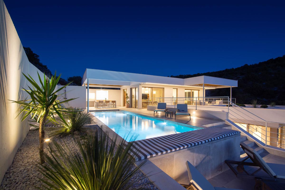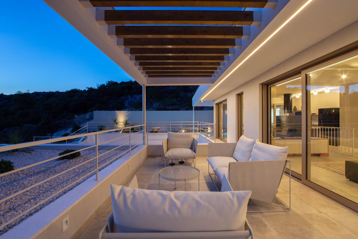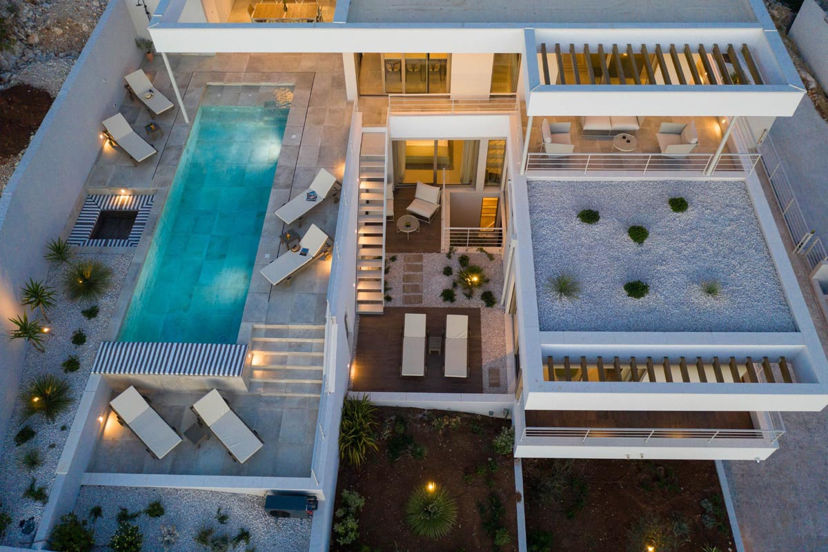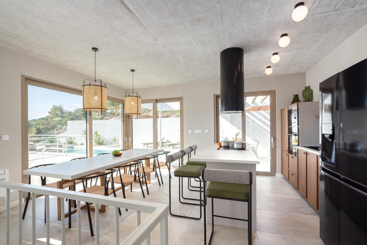 The concept is very interesting and diverse, it creates that internal dynamic and makes the place as interactive as possible. With its clean and minimalist approach, the interior of the house promotes both simplicity and warmth. The house includes a spacious garage and a built-in sauna, jacuzzi and gym. The most central part of the house will certainly be the large swimming pool on the main outdoor terrace, which will be used for entertaining.