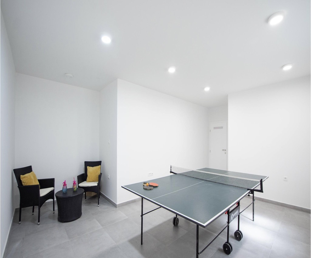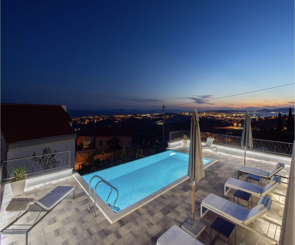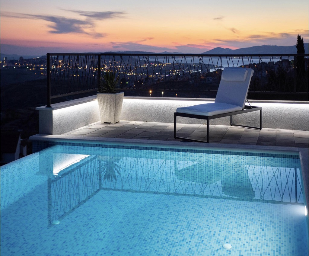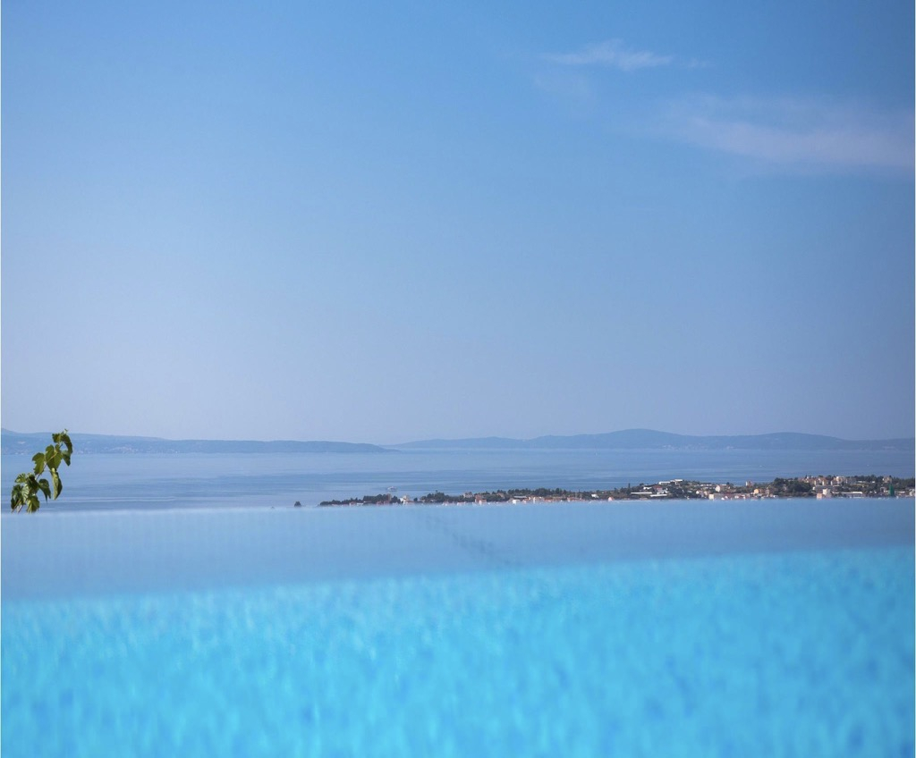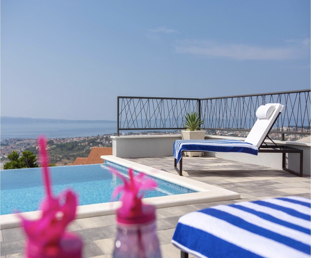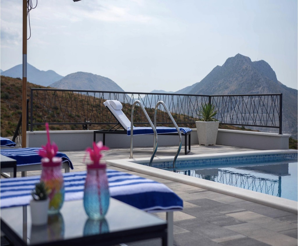 A stunning, spacious swimming pool on the terrace is what catches your eye as it is perfectly positioned to watch the amazing sunsets over the bay and feel like you are in your own exotic oasis!