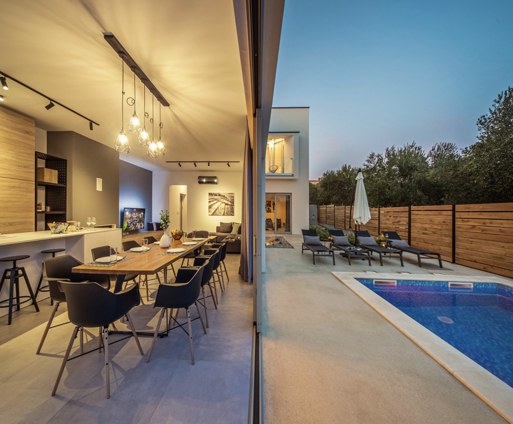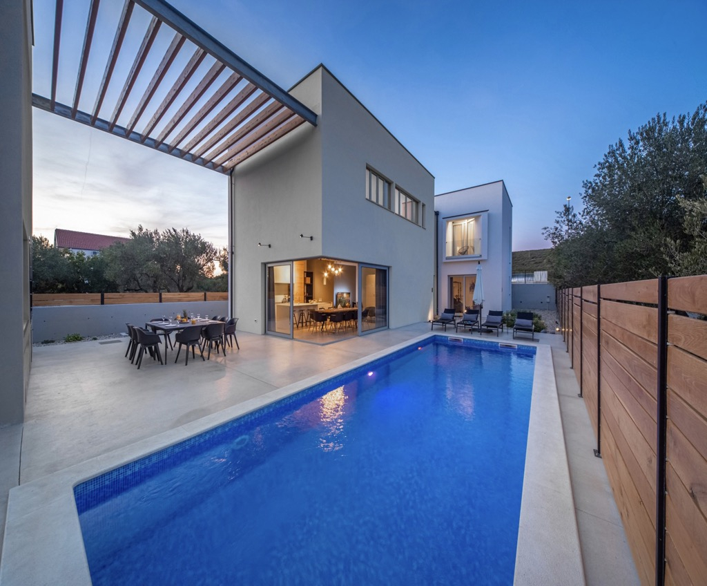 Take a moment to view this stunning, ultra-modern and innovative villa, located just 20 km from the center of Zadar and about 100 m from the sea.
