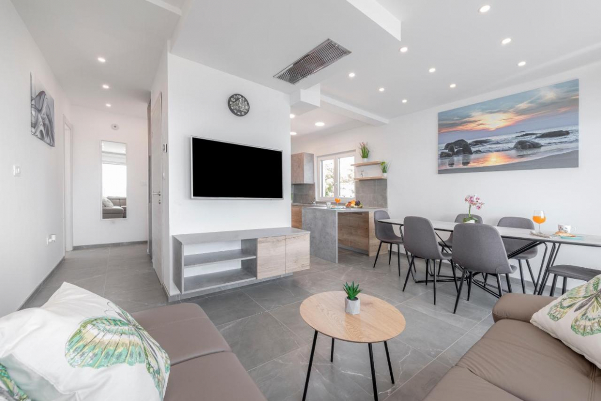 Apartments under construction in a beautiful location in Čižići, 320 m walk from the nearest beach. The four...